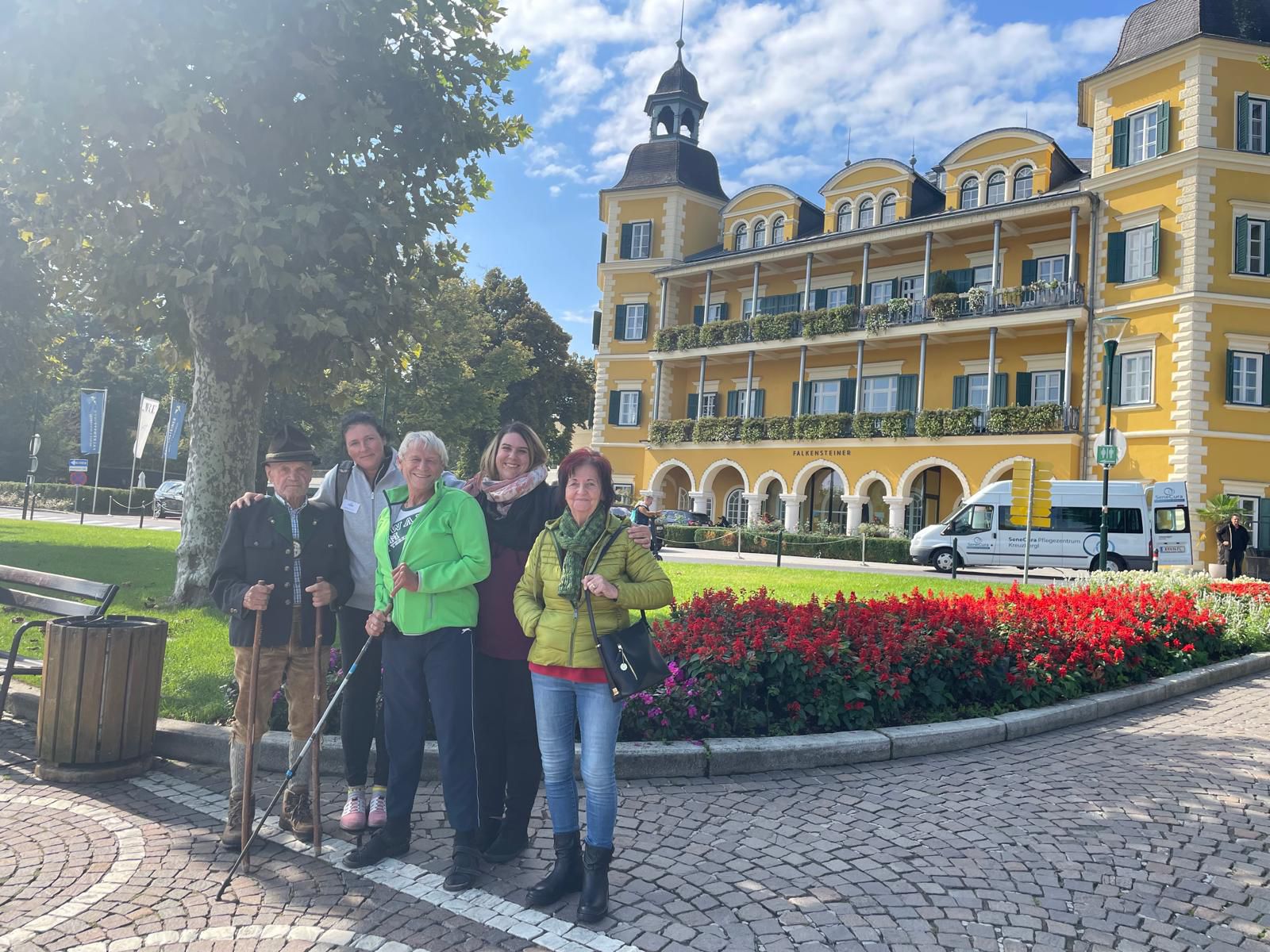 Unlängst fand der Urlaubsaustausch zwischen SeneCura Pflegezentrum Kreuzbergl sowie SeneCura Sozialzentrum Wagrain statt. Die Salzburger Urlauber:innen erlebten einen unvergessliche Zeit in Kärnten. Auf dem Programm stand ein vielfältiges Ausflugsangebot, denn die Bewohner:innen aus Wagrain besuchten den Affenberg und die Adlerburg Landskron, wo sie Tiere hautnah erleben konnten. Außerdem durfte eine entspannte Wörthersee-Schifffahrt nicht fehlen, die malerische Aussicht bot. Der Pyramidenkogel mit seiner atemberaubenden Aussicht, der Reptilienzoo Happ sowie der Tierpark Rosegg wurde ebenso unsicher gemacht. Der Urlaubsaustausch nach Kärnten sorgte für besondere Momente und vor allem unendlich viel Spaß.