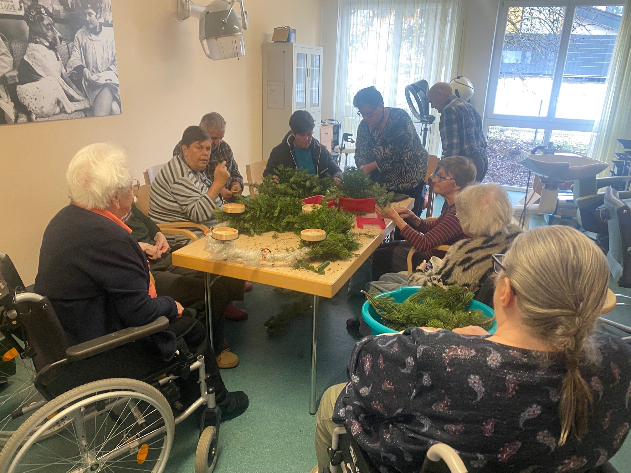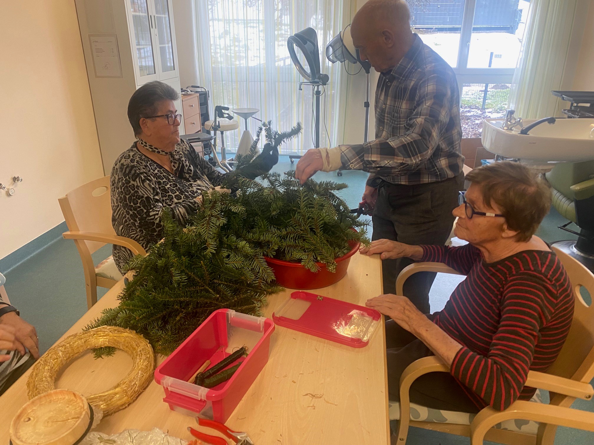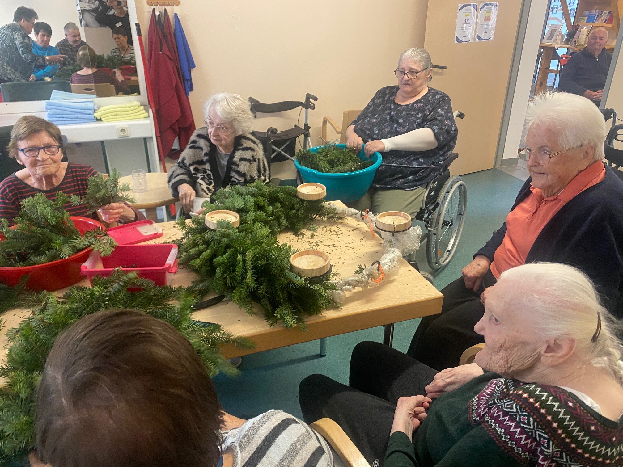 Kurz vor dem ersten Adventsonntag waren die Bewohner:innen des SeneCura Sozialzentrums Wagrain besonders fleißig und haben wunderschöne Adventkränze für das Haus gebunden. Die Senior:innen hatten große Freude daran das Grünzeug zu einem Kranz zu binden und mit diversen Weihnachtsdekorationen zu schmücken. Die Adventkränze können sich definitiv sehen lassen und verbreiten nun im ganzen Haus vorweihnachtliche Stimmung.
