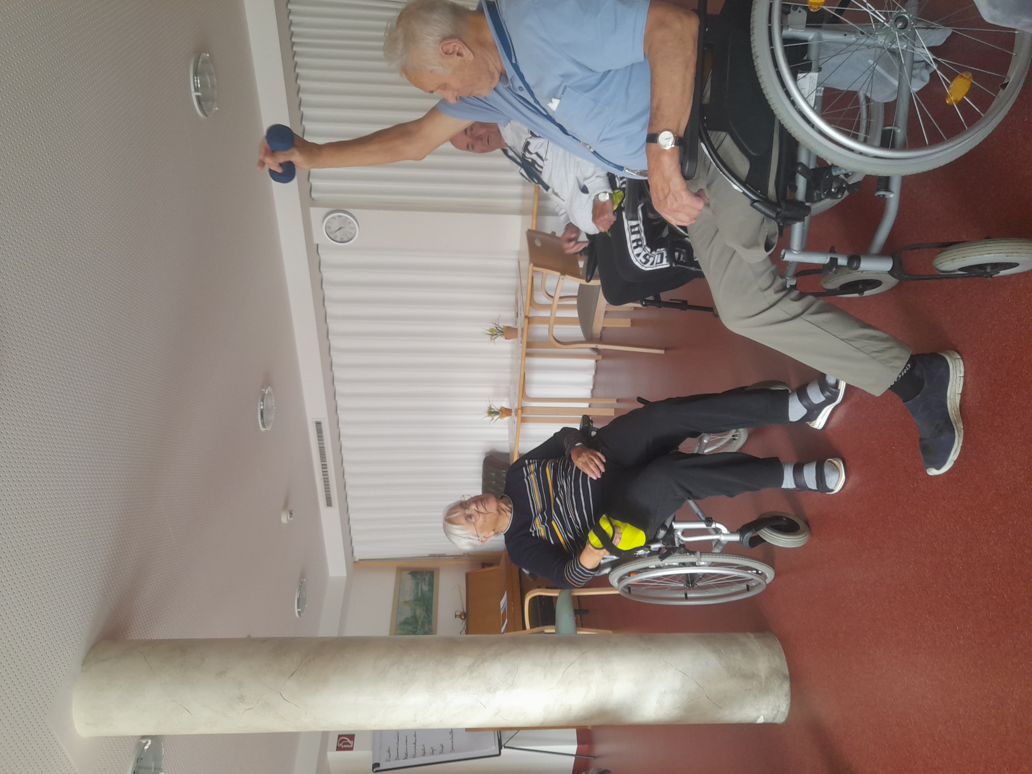 gespielt und ein Bewohner leihte den Sportler:innen seine 3kg schwere Hantel, um sie hochheben zu können. Es war ein aktiver Vormittag voller Gemeinschaft, Spaß und Fitness.